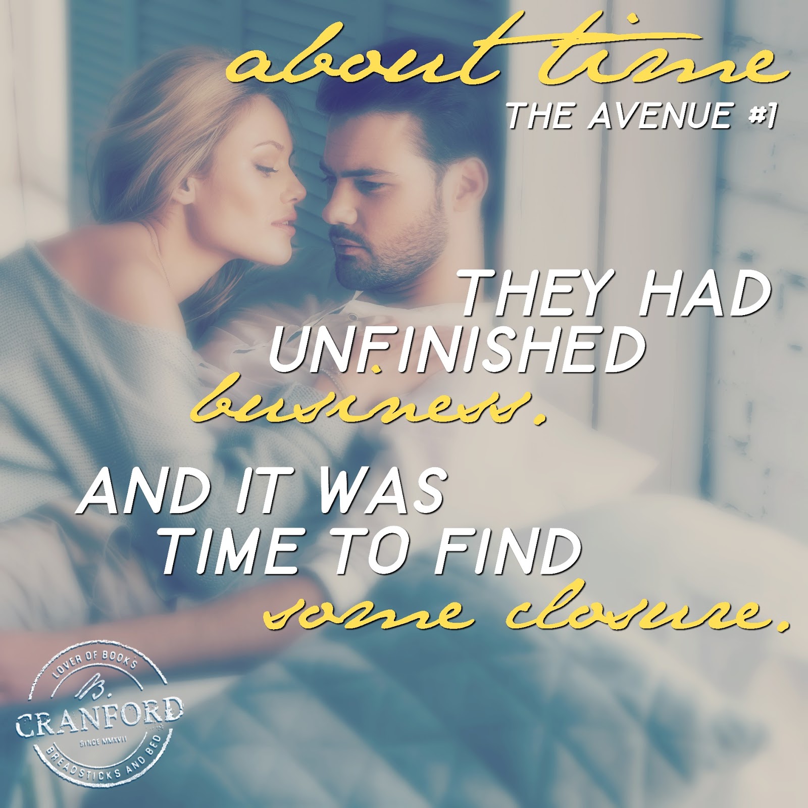 About Time is the first in a new series for B. Cranford. B. Cranford is quickly becoming one of the very few authors that I will read anything she writes. So of course, I jumped on the chance to read this one. As with all of her books, B. Cranford gives such a refreshing take on standard tropes. At the core, this is a second chance romance with a pregnancy thrown in. Now, if you’ve read any of my other reviews you’ll know that I’m not a huge fan of pregnancies in books. (There’s no reason for it…just a weird quirk of mine). But this one was such a different spin on introducing a pregnancy into a book that it added to the story rather than distract. This book tells the story of how life can take many turns and encounter many obstacles but will lead us to where we need to be.